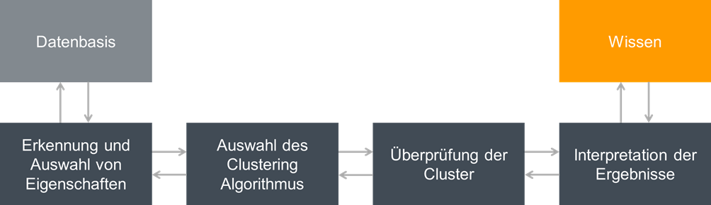 Daraufhin überprüft der Algorithmus die Cluster erneut und interpretiert die Ergebnisse des Clusterings. Hierdurch wird dann als Endergebnis Wissen geschaffen, welches dem Algorithmus hilft, zukünftige Eingaben noch schneller zu clustern und dadurch zu klassifizieren.